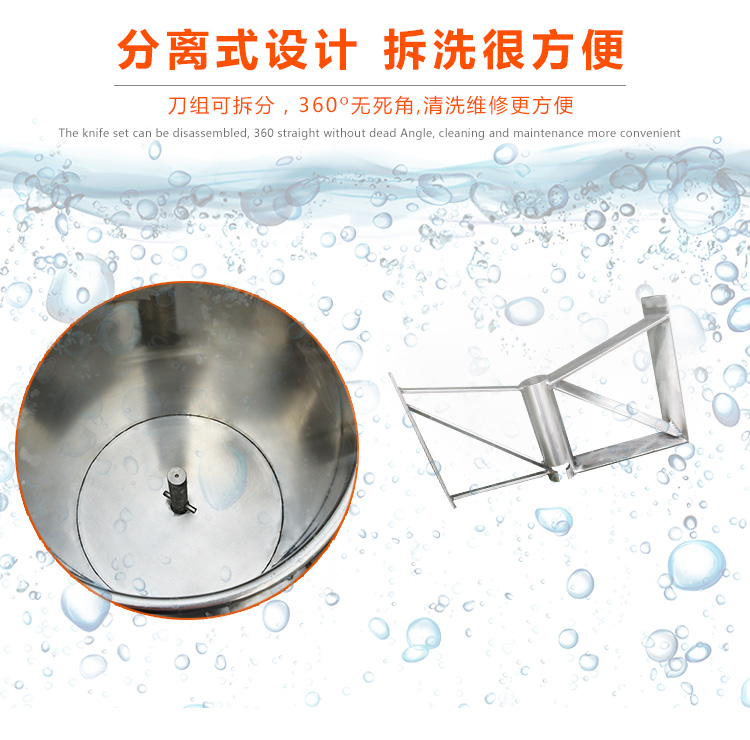 贛云牌36型全封閉式慢速肉丸打漿機選優(yōu)質(zhì)不銹鋼,在全不銹鋼慢速肉丸打漿機基礎(chǔ)上將整機外殼用不銹鋼板材封裝,更好的保護電動機,通過小皮帶輪帶動大皮帶輪減速,慢速拍打肉漿。