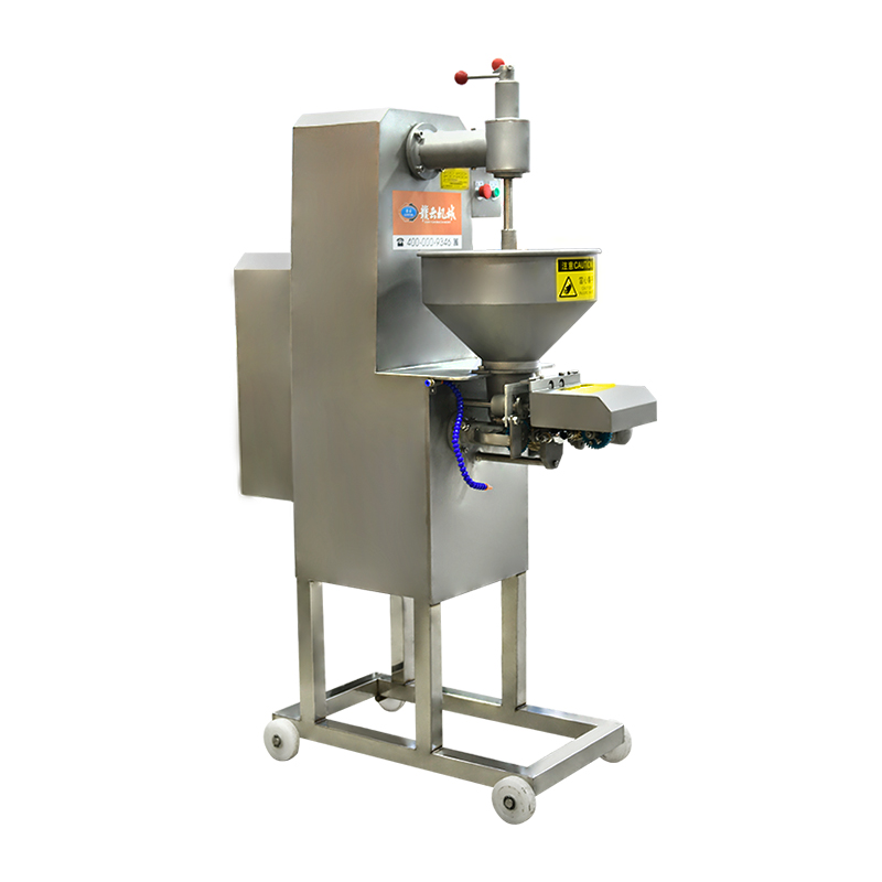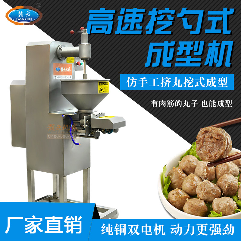 全自動仿手工擠丸挖式成型機,又稱墨魚丸成型機或高速貢丸成型機,是一款完全仿手工用匙子成型的設備。不同于普通成型機的刀片切割,用開明型鋼勺自動舀挖出丸子,做出丸子具有彈性好,圓度好、外表皮光滑或保持原漿體顆粒,還可以拔層的特點,。特別在做貢丸和牛肉丸這些有肉筋的丸子的時更能顯示其顯著的性能。
