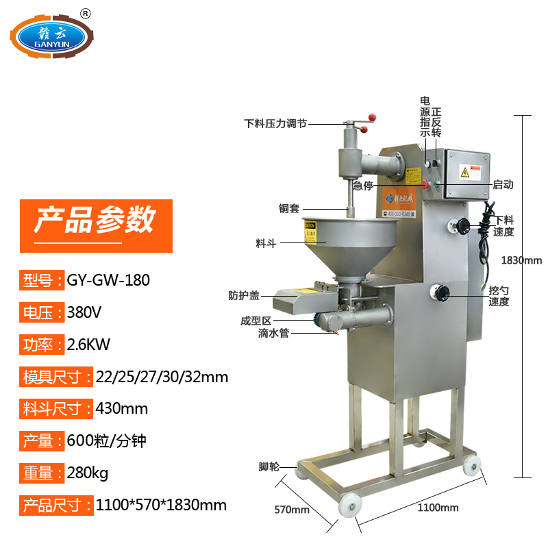 主頁-> 肉丸成型機械->實心肉丸機->180型高速挖式貢丸機