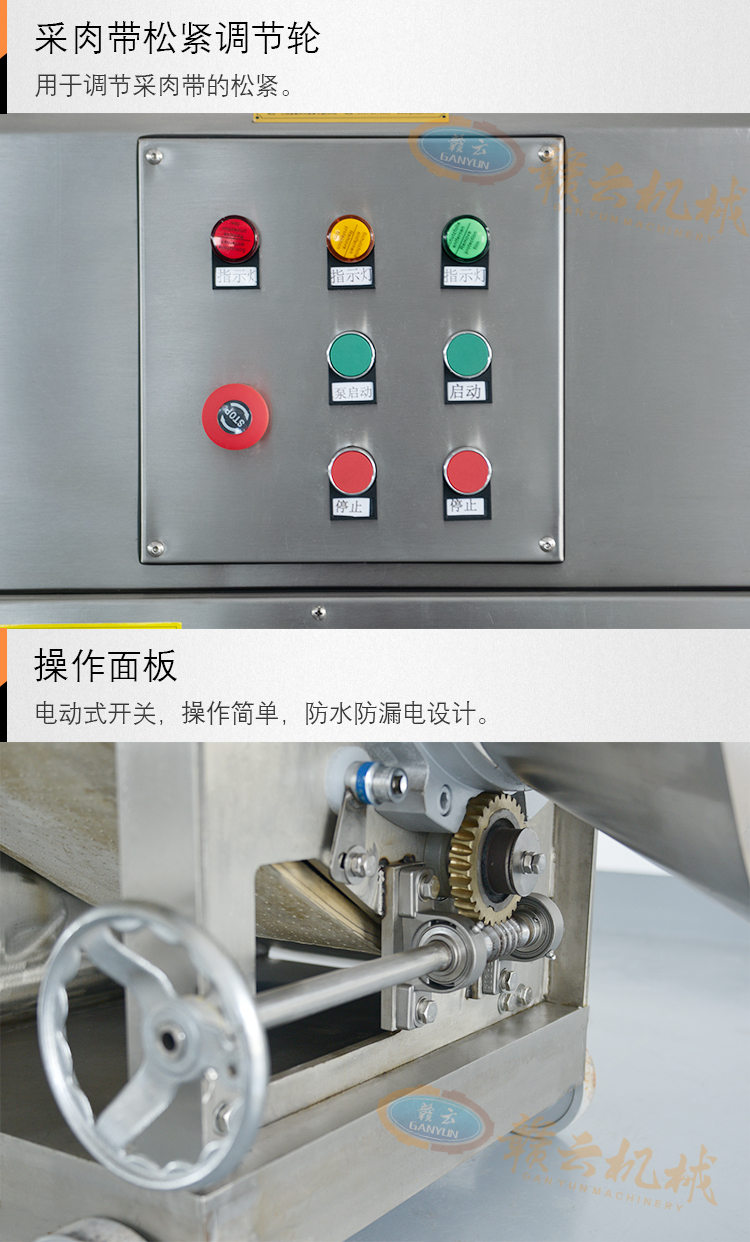 贛云牌新款350型魚肉采取機(jī)新品上市,采用全304不銹鋼材質(zhì),整體設(shè)計(jì)高端大氣,結(jié)構(gòu)牢固。性能穩(wěn)定,可時(shí)產(chǎn)達(dá)2噸,魚肉采取干凈無(wú)魚刺,可直接用于魚糜深加工,做成各種高品質(zhì)魚丸、魚餅、魚排、魚脯等,這款采肉機(jī)除了可采取魚肉、蝦肉、蟹肉、泥鰍肉等,還可用于其他水產(chǎn)魚類的采肉工作。
