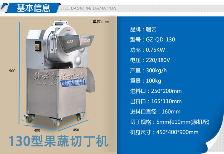 果蔬加工機(jī)械->切片切絲切丁機(jī)->130型果蔬專用切丁機(jī) | |||||||
