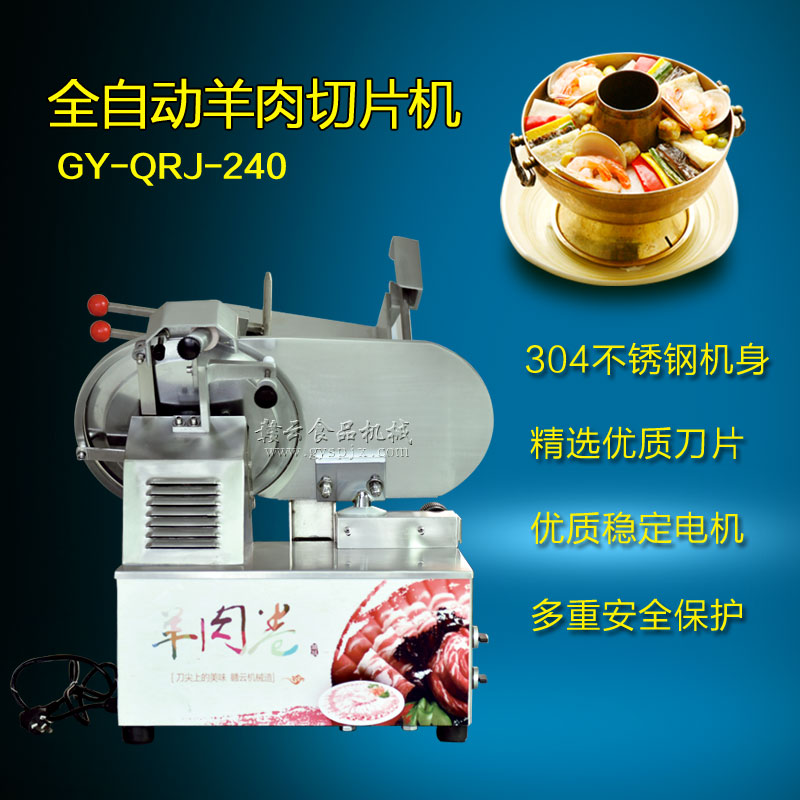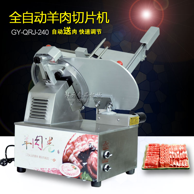 贛云牌全自動羊肉切片機采用加硬不銹鋼刀片,有效的保證了切割效率,切片厚薄可調(diào)0-15mm,可切零度以下凍肉,是凍羊肉、牛肉、豬肉切片,切卷利器;該機采用雙電機分別控制切肉刀轉(zhuǎn)動和推料走動,切肉刀轉(zhuǎn)動控制開關(guān)關(guān)閉狀態(tài)會自動切斷推料走動電機電源,已確保操作人員的人身安全。整機設(shè)計科學(xué)合理、美觀大方、省時省力、安全高效,是火鍋店、酒店、西餐等加工羊肉卷信賴的設(shè)備。