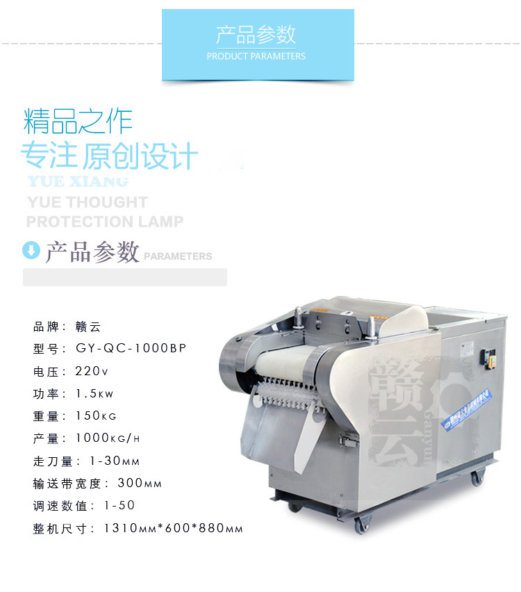 贛云續(xù)1000型切菜機的廣泛應(yīng)用的基礎(chǔ)上,新增了加高款、加厚款、變頻款等多種款式,以解決不同客戶的實際生產(chǎn)需求,體現(xiàn)贛云品牌價值。本款為變頻調(diào)速款,在原1000B型切菜機的基礎(chǔ)上增加變頻器控制調(diào)節(jié)電機速度以達(dá)到改變切菜速度的效果。