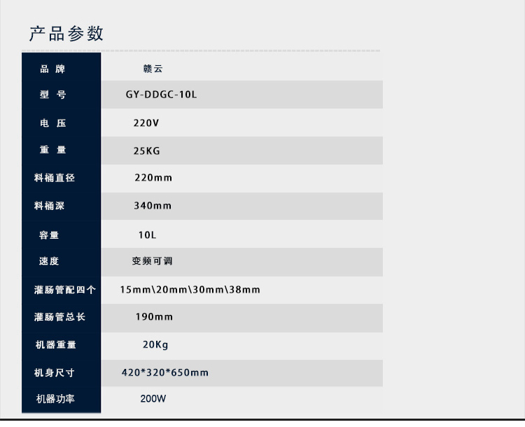 肉制品前處理->專用灌腸設(shè)備->電動灌腸機10L | |||||||