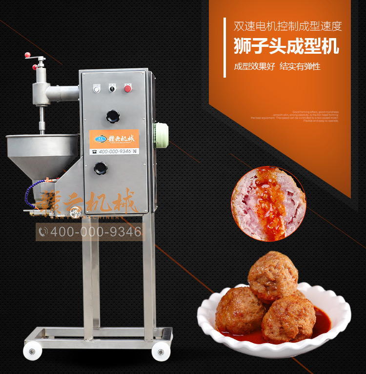 獅子頭成型機是我司研發(fā)的有一款適合大肉丸成型的設(shè)備,如寧都大肉丸,獅子頭,該機采用雙速電機分別控制進料速度和切割速度,調(diào)節(jié)更人性化處理,適合不同稀稠度肉漿的成型,是寧都大肉丸、獅子頭成型的好幫手。