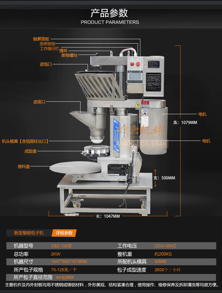 新型智能包子機(jī)產(chǎn)品技術(shù)參數(shù):