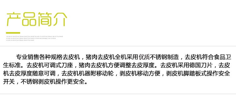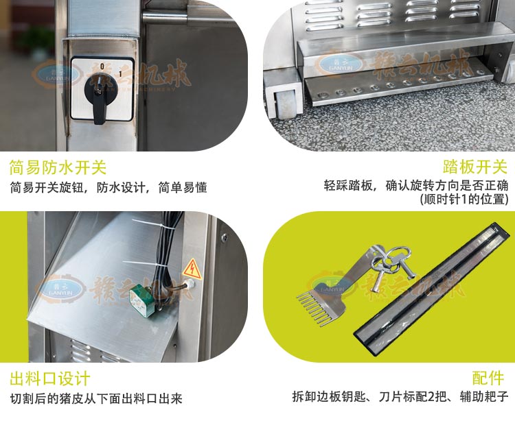 豬肉扒皮機(jī),扒皮用什么好,扒皮機(jī)那個(gè)牌子的好豬肉去皮機(jī)扒皮機(jī)采用不銹鋼制造,去皮機(jī)符合食品衛(wèi)生標(biāo)準(zhǔn)。去皮機(jī)可調(diào)式刀座,豬肉去皮機(jī)方便調(diào)整去皮厚度。去皮機(jī)采用優(yōu)質(zhì)刀片,去皮皮厚可調(diào)節(jié),去皮機(jī)附移動(dòng)輪,移動(dòng)方便。扒皮機(jī)腳踏板式操作安全開(kāi)關(guān),操作安全。