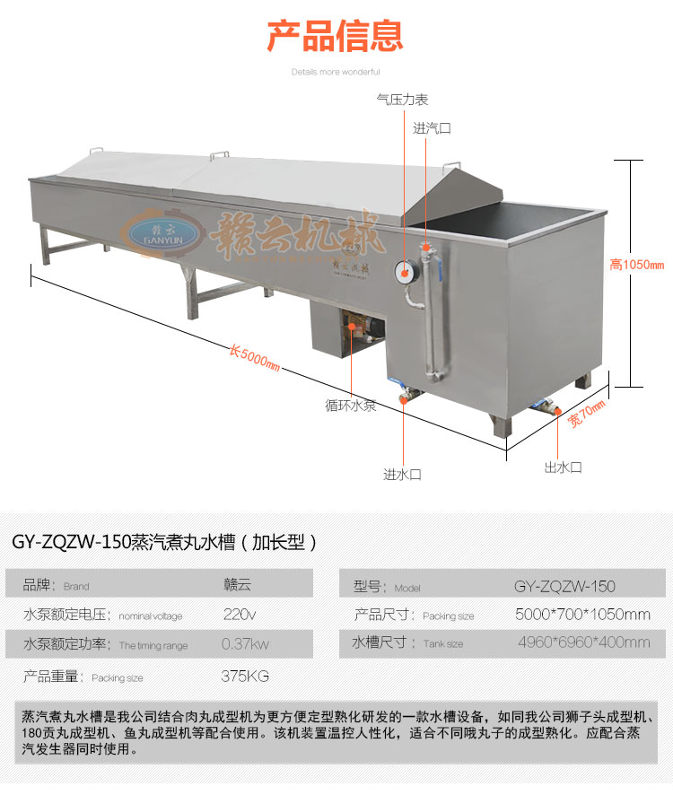 肉丸成型機(jī)械->自動(dòng)煮丸子水槽->5米水煮槽蒸汽款 | |||||||
