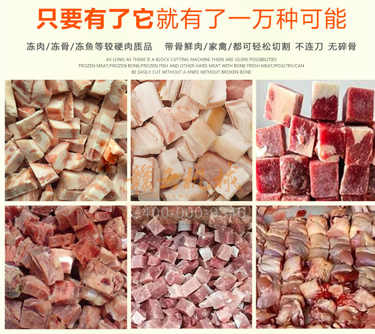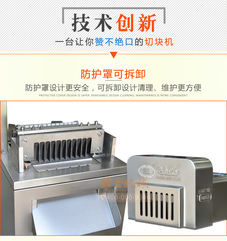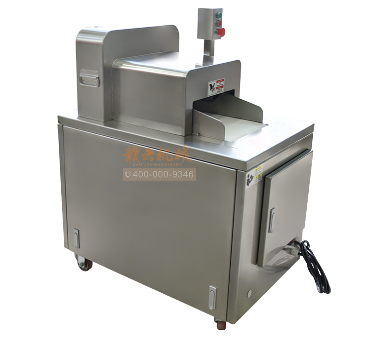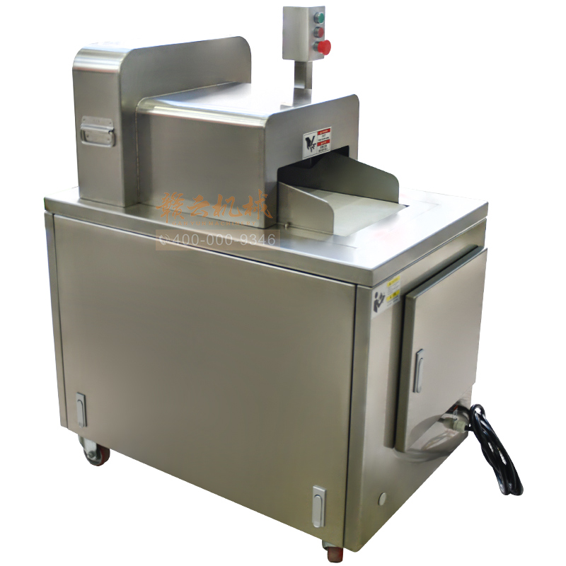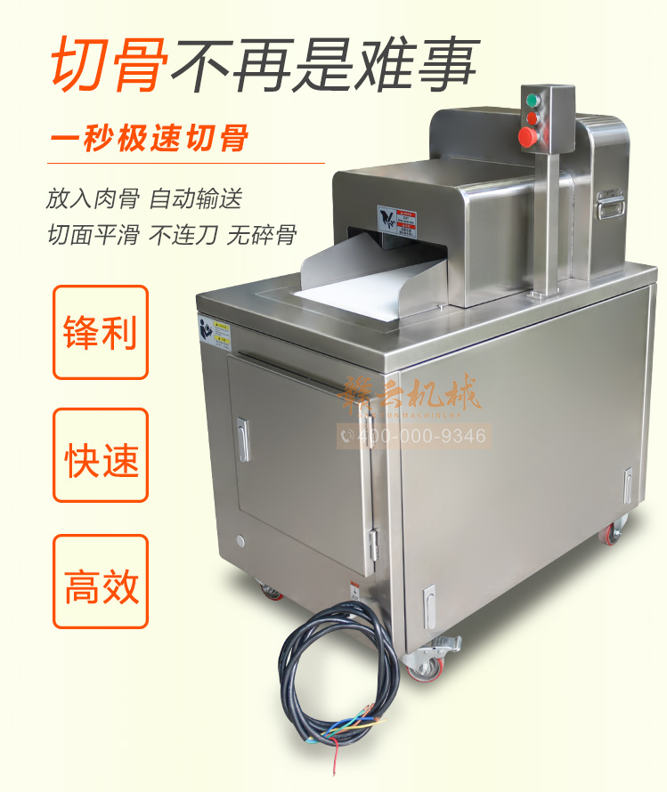 本機(jī)是切斷各種動(dòng)物骨頭及帶肉骨頭的機(jī)器,可切凍肉,凍骨,凍魚(yú)等較硬食品,還可以完全切斷新鮮的帶肉骨頭,鮮肉 家禽 不連刀無(wú)碎骨。整機(jī)采用全不銹鋼護(hù)罩,干凈衛(wèi)生,清洗方便;電機(jī)帶動(dòng),每分鐘可切83次,效果高效,而且全自動(dòng)送料,安全可靠。
