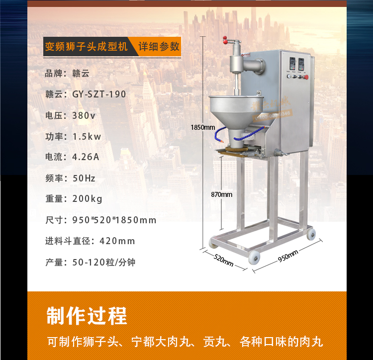 主頁-> 肉丸成型機械->實心肉丸機->190型變頻獅子頭機
