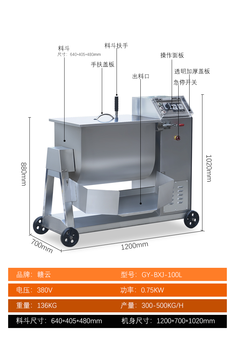 主頁-> 肉制品前處理->斬拌滾揉設(shè)備->100L不銹鋼拌料機(jī)