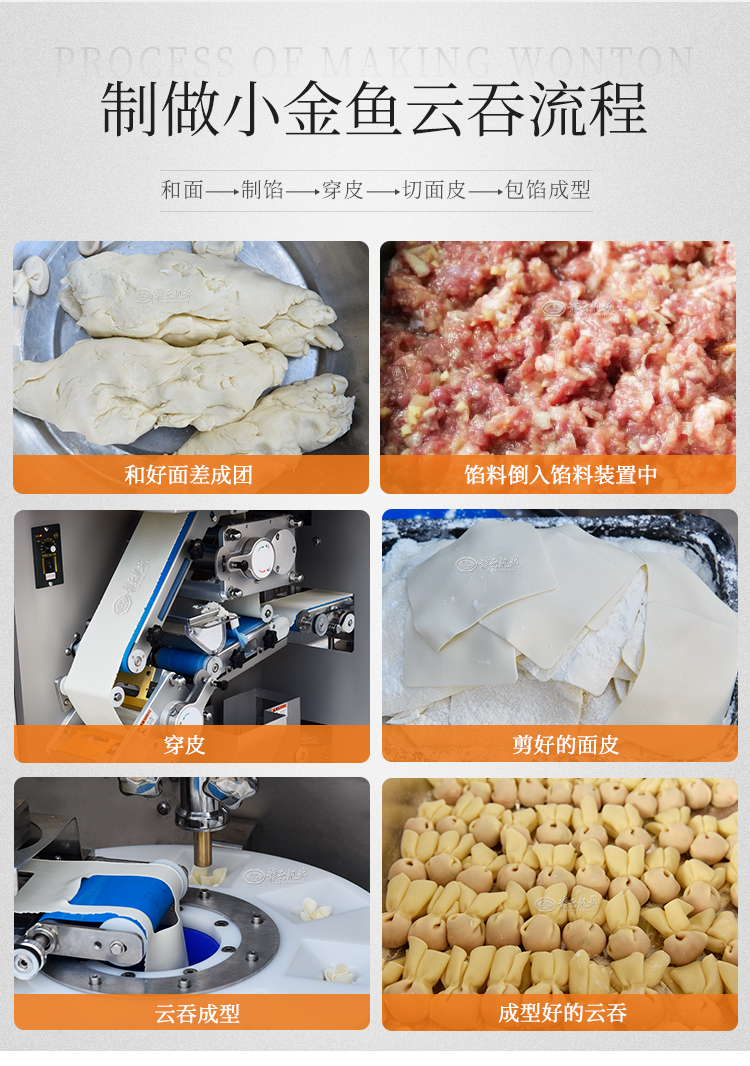 小金魚云吞機(jī)也叫小吃餛飩機(jī),全自動(dòng)生產(chǎn)餛飩,云吞生產(chǎn)效率速度快,機(jī)身采用不銹鋼材質(zhì),操作簡(jiǎn)單,了解云吞機(jī)視頻和詳細(xì)參數(shù),聯(lián)系贛云