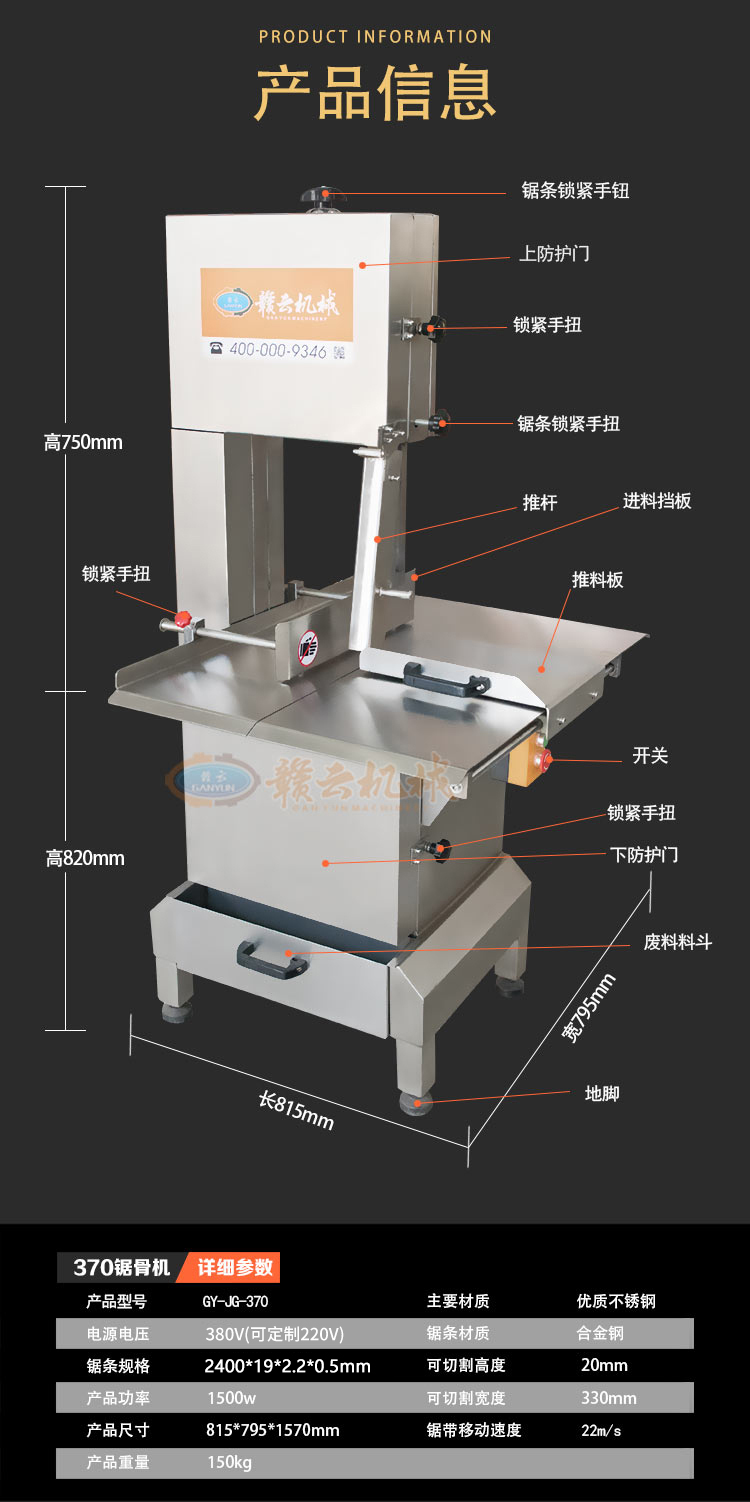 370型商用鋸骨機(jī),食品機(jī)械生產(chǎn)制造,質(zhì)量鑄就贛云品牌!好品質(zhì),值得信賴。