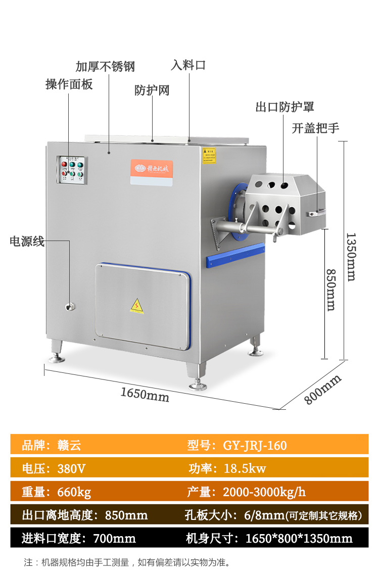 160型凍肉絞肉機使用高速螺旋擠壓技術(shù)
