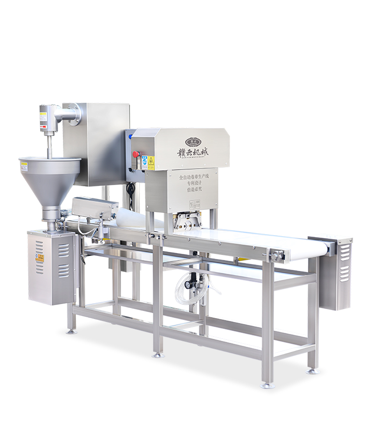 全自動卷章機(jī)也可以叫廣章機(jī),是一款取代手工制作各種潮汕廣章美食、腐皮肉卷的機(jī)器。卷章機(jī)有兩個型號,分別是單管單頭的單頭卷章機(jī)和雙管雙頭的雙管卷章機(jī)。全自動卷章機(jī)擁有自動包漿、自動肉卷成型、自動肉卷切斷,讓肉卷生產(chǎn)效果高。卷章機(jī)做出的各類肉卷美食造型美觀,機(jī)器自帶獨(dú)特錐形成型裝置,讓肉卷成型圓度好,接近手工制作的工藝。