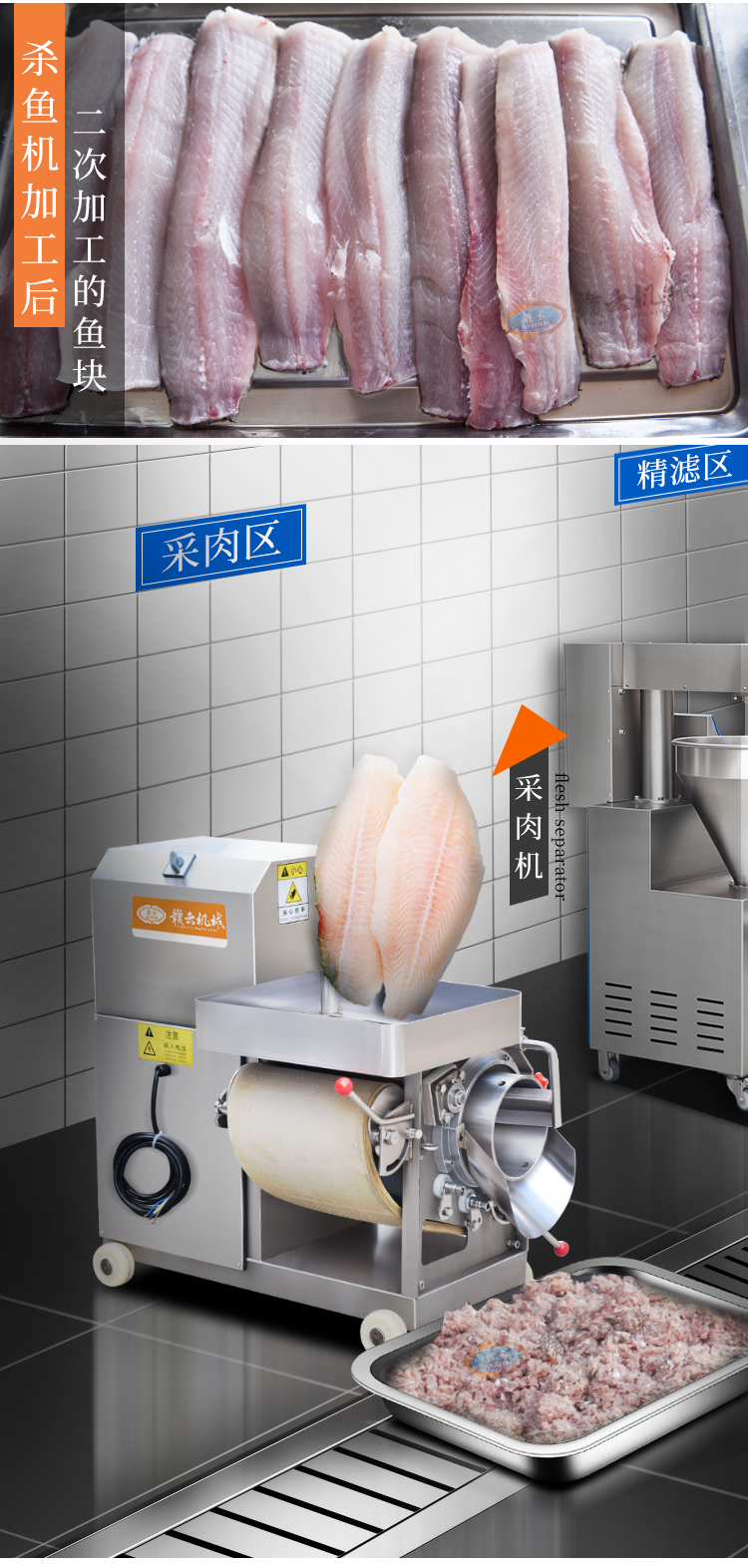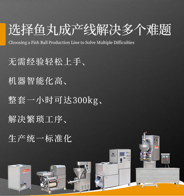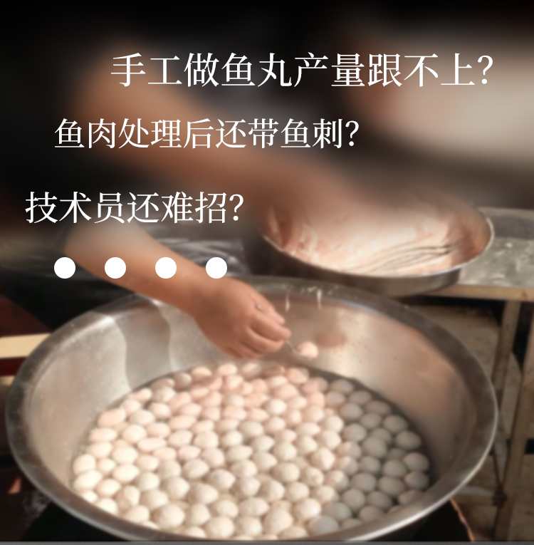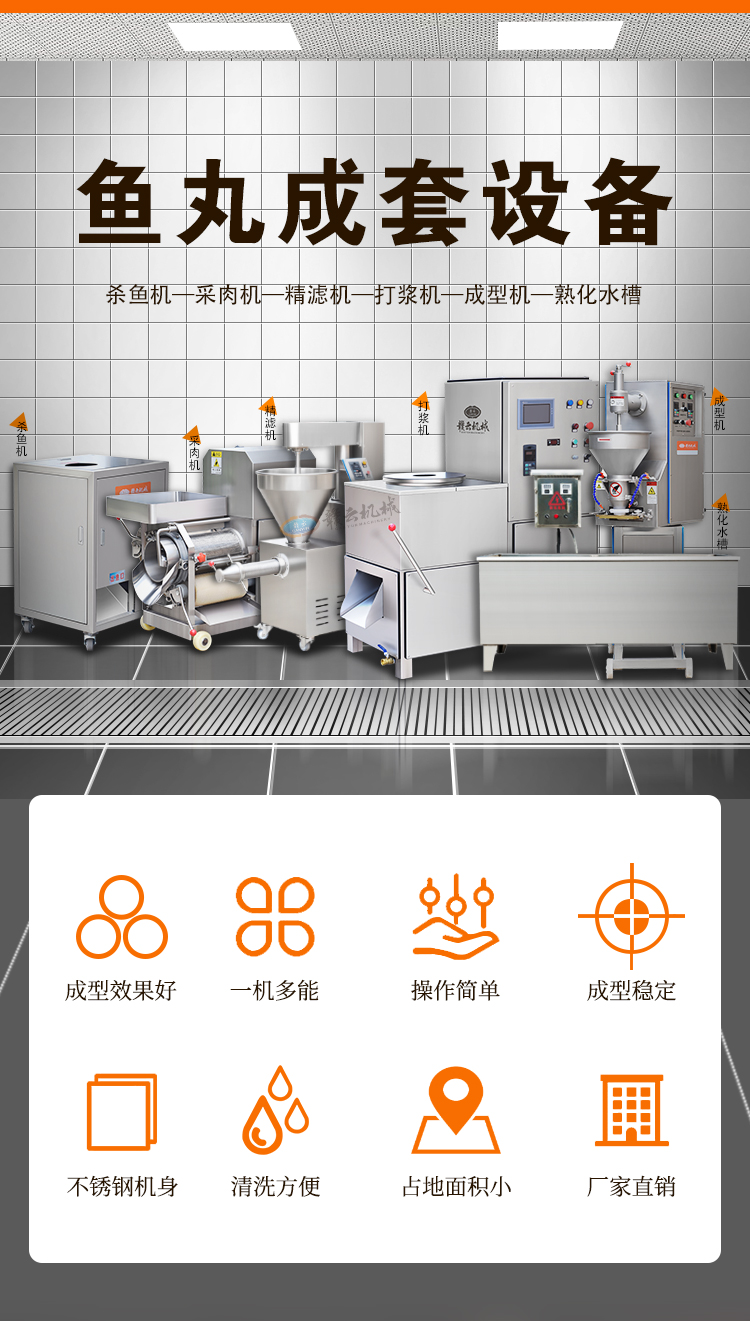 本套設(shè)備從殺魚、采肉、魚糜精濾、魚肉打漿、魚丸成型到最后的熟化。