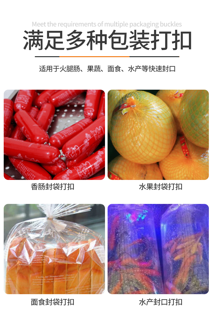 適用于火腿腸打扣、食品包裝等快速、準(zhǔn)確打扣等。
