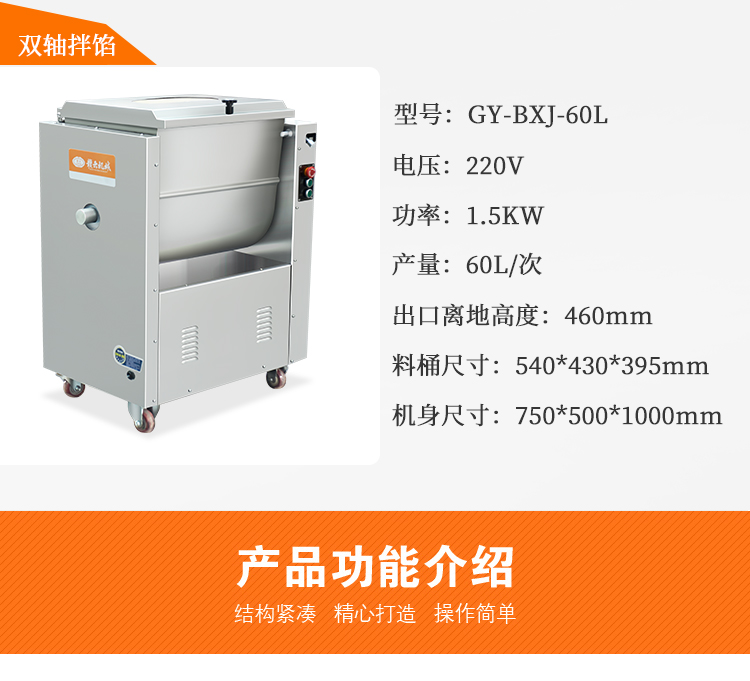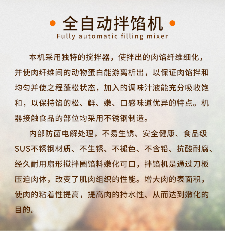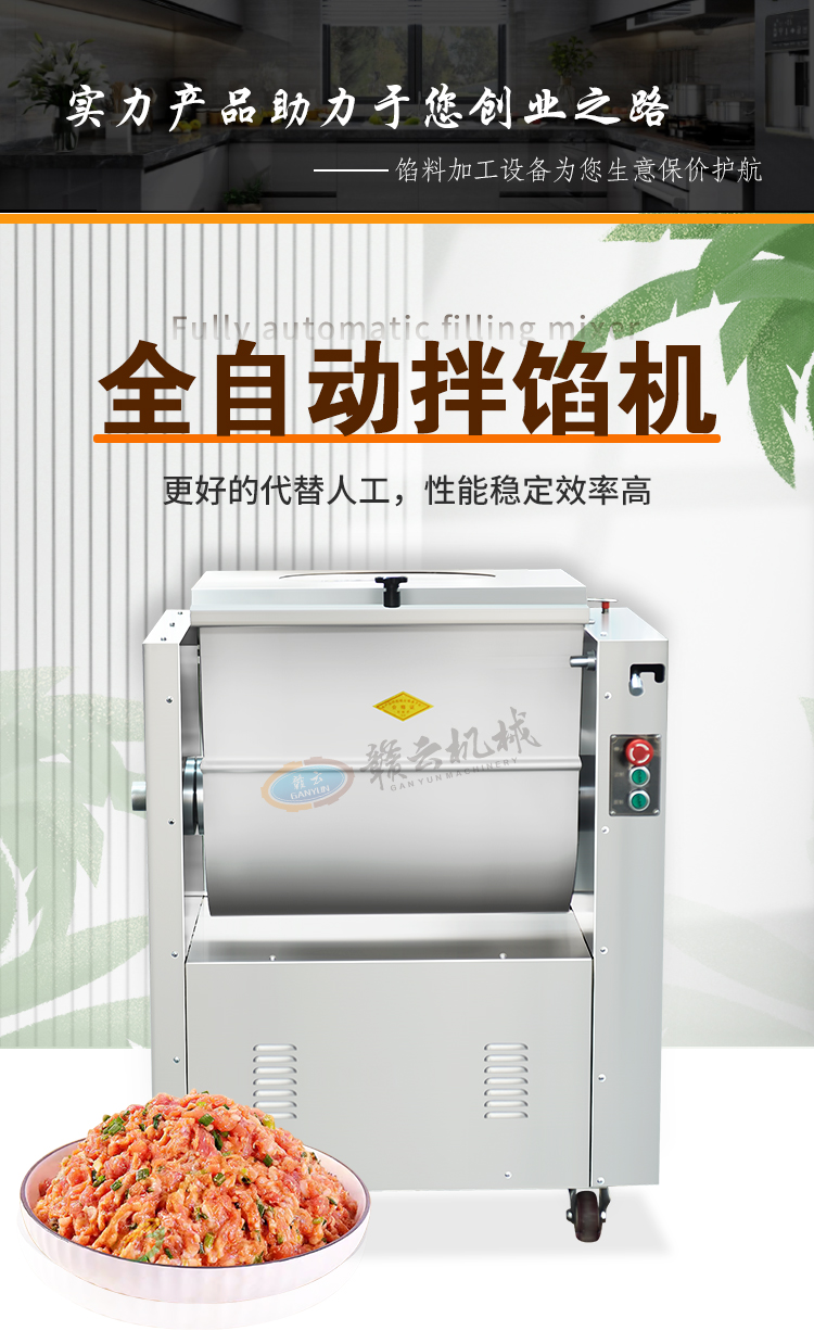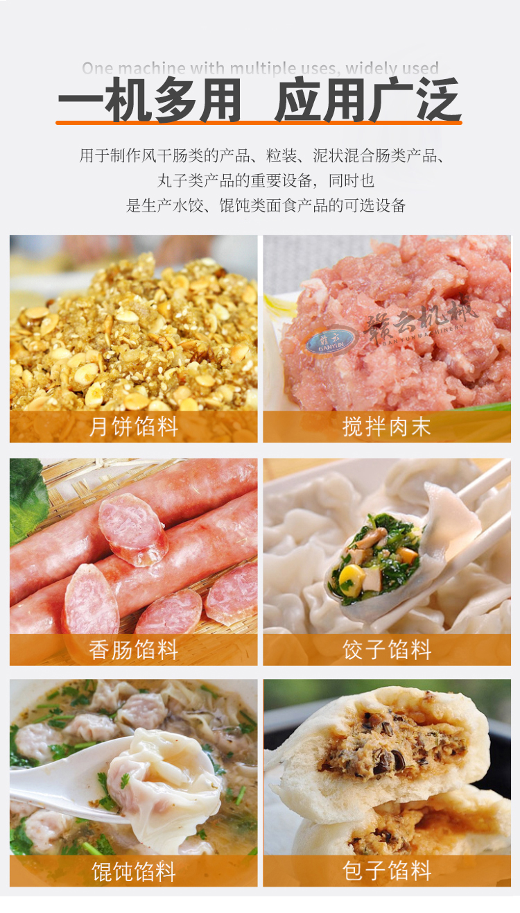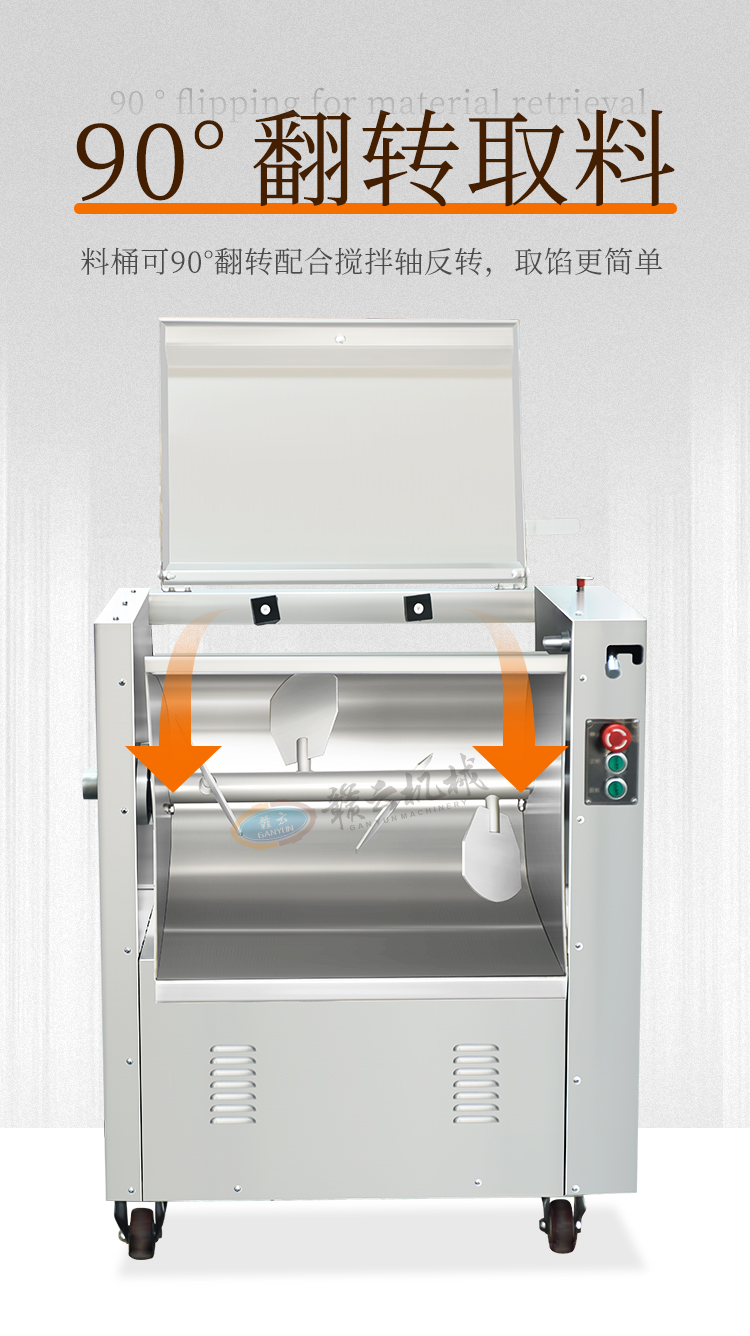 用于月餅餡、肉末、香腸餡、餃子餡、餛飩餡、包子餡、獅子頭等粒裝、泥狀餡料的混合攪拌。