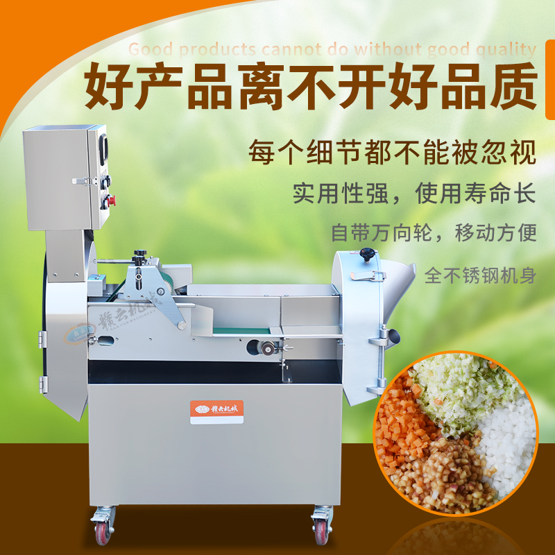 好產(chǎn)品離不開好品質(zhì),贛云切菜機(jī)采用全不銹鋼機(jī)身,堅(jiān)固耐用,使用壽命長。機(jī)器細(xì)節(jié)之處也經(jīng)過精心打磨,注重品質(zhì),值得廣大客戶的信賴,設(shè)備實(shí)用性強(qiáng)。切菜機(jī)工作效率高,一臺(tái)機(jī)器堪比10個(gè)人工,大大的節(jié)省了人工成本。