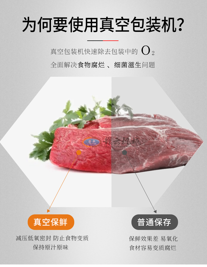 用于各種食品的抽取真空進(jìn)行袋裝保鮮,防止食品氧化霉變、防潮,延長貨架期。