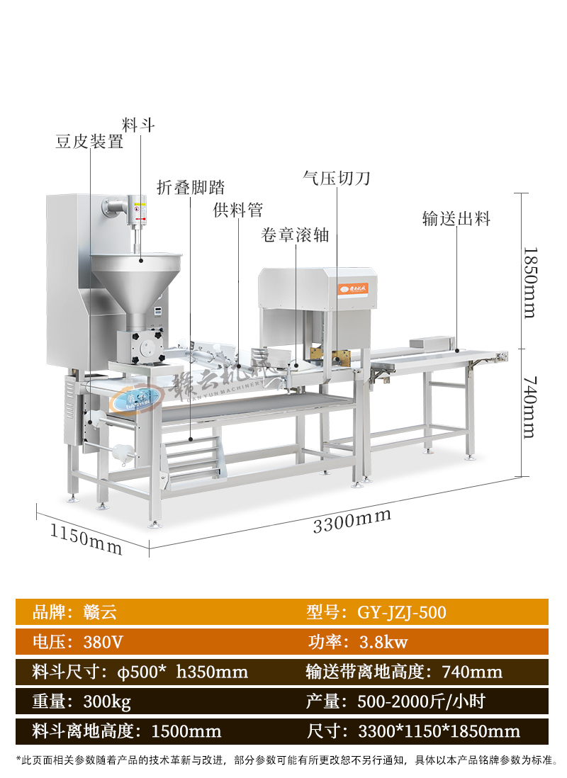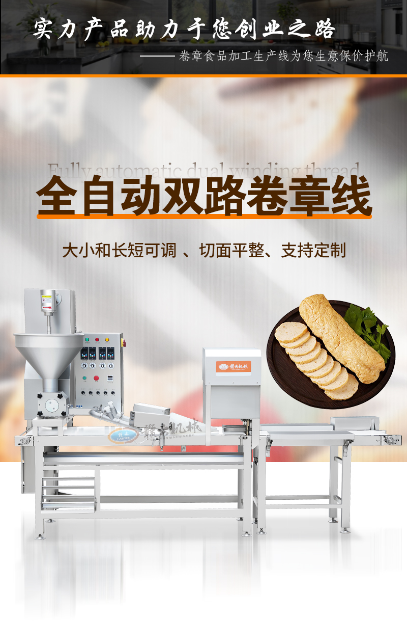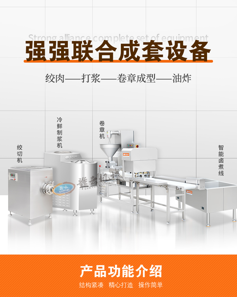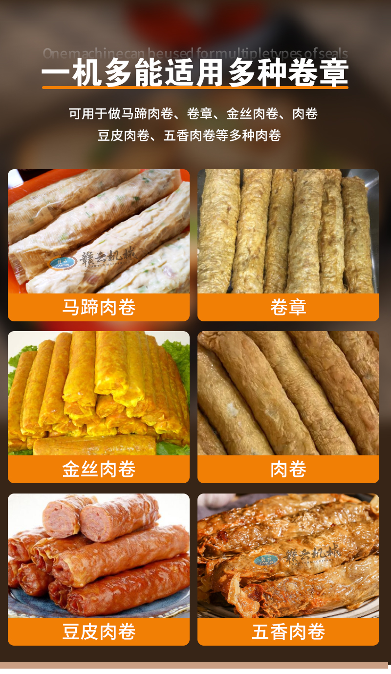 用于生產(chǎn)卷章、肉卷、腐皮肉卷、馬蹄肉卷、豆皮肉卷、肉餅等