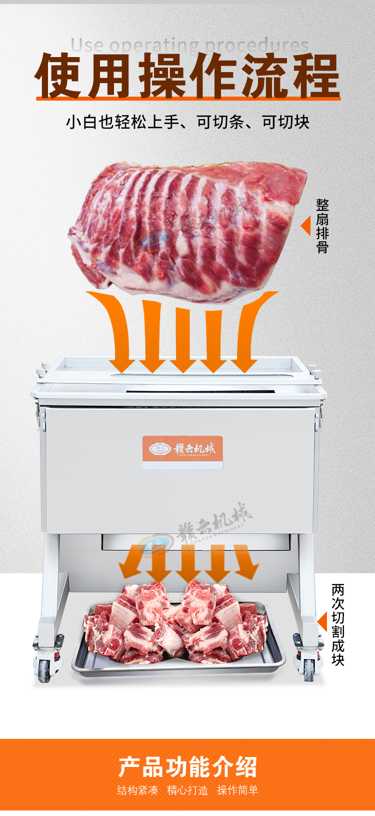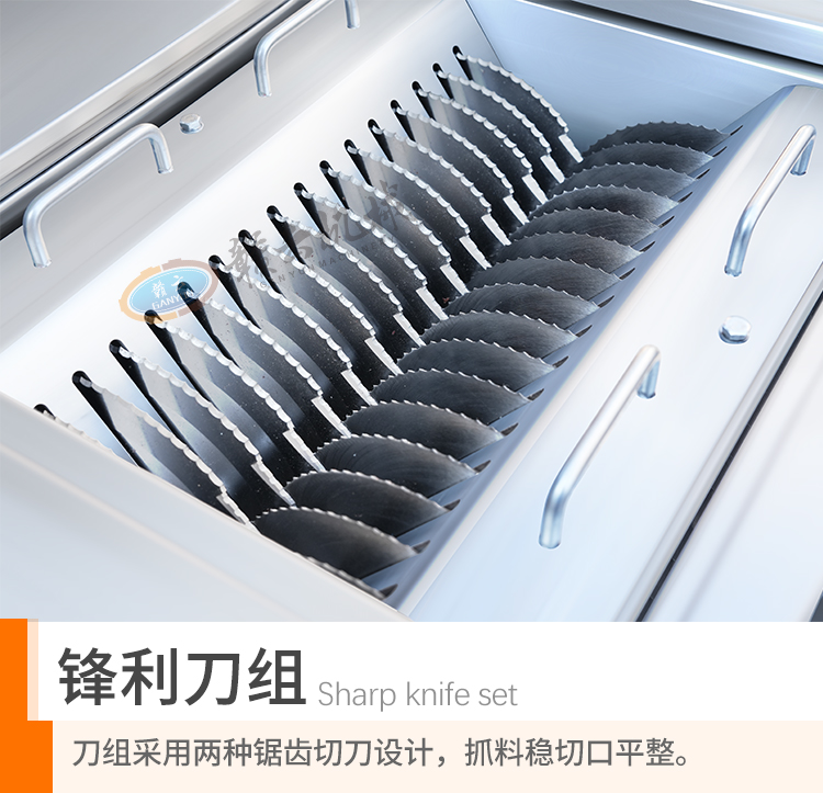用于新鮮豬排骨、羊排、雞、鴨、魚、兔子、豬蹄等的切條切塊加工。