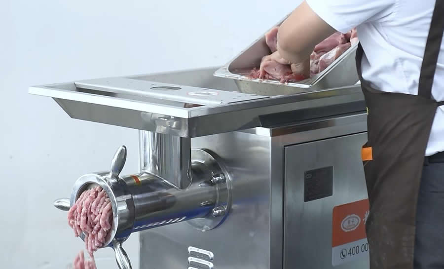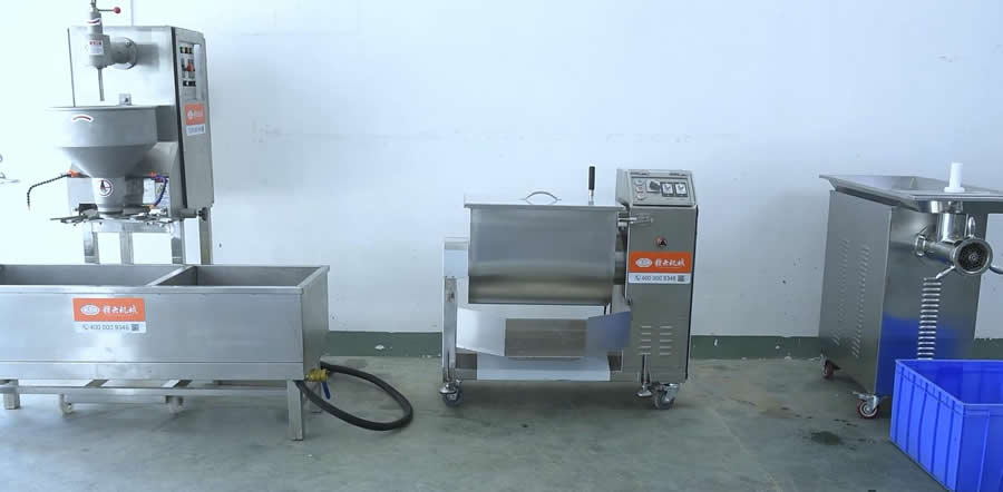 這一整套設(shè)備包含有:絞肉機(jī)、拌餡機(jī)、獅子頭肉丸成型機(jī)、智能溫控雙加熱水槽,這4臺設(shè)備組合可達(dá)到日產(chǎn)1噸肉丸,接下看看由贛云機(jī)械操作的機(jī)器全過程。