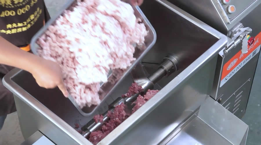 在將所有需要絞碎的原料通過絞肉機(jī)加工完成后,接下來這一步將使用贛云不銹鋼拌料機(jī),這個拌料環(huán)節(jié)就很重要,攪拌過程中的的添加的配料順序和攪拌時間都將會影響最后做出來的肉丸口感。