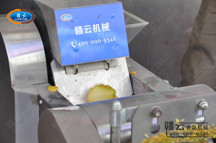 贛云工作人員演示多功能切菜機的切菜效果厚薄調節(jié)-調試客戶所需要求厚薄。