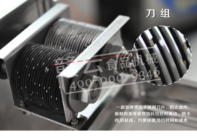 贛云切肉機(jī)出新品了,檔次升級了,QR系列全不銹鋼商用電動切片機(jī)-切絲機(jī)重磅推出,主體構(gòu)架、配件、外殼等均采用不銹鋼材質(zhì),切肉不銹鋼刀片特殊處理,帶齒加硬!有效防止了市面上大部分切肉機(jī)卡肉、粘連等現(xiàn)象的發(fā)生。是單位食堂、酒店餐飲行業(yè)首選品質(zhì)設(shè)備。