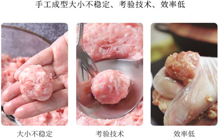 成型:將混合好的肉漿通過手工擠捏成球狀,這一過程既費(fèi)時(shí)又費(fèi)力。