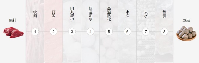 肉丸加工流水線是將不同的肉料通過切割、打漿、成型、定型、熟化、冷卻、去水、包裝等肉丸加工生產(chǎn)自動化設(shè)備的解決方案。