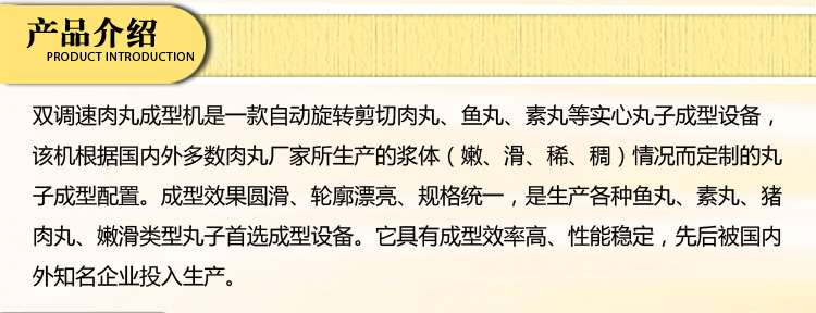 雙調速肉丸成型機,這款肉類加工廠必備的設備,可以制作實心魚丸,素丸,肉丸等,是一款自動旋轉剪切機,制作出的肉丸可以銷往各地,這款肉丸成型機在食堂,飯店、工廠等,是必不可少的一款加工設備,深受客戶青睞,該機根據國內外多數肉丸廠家所生產的漿體(嫩、滑、稀、稠)情況而定制的丸子成型配置。成型速度可調90-500粒每分鐘,成型效果圓滑、輪廓漂亮、規(guī)格統(tǒng)一,是生產各種魚丸、素丸、豬肉丸、嫩滑類型丸子首選成型設備。它具有成型效率高、性能穩(wěn)定,先后被國內外知名企業(yè)投入生產。