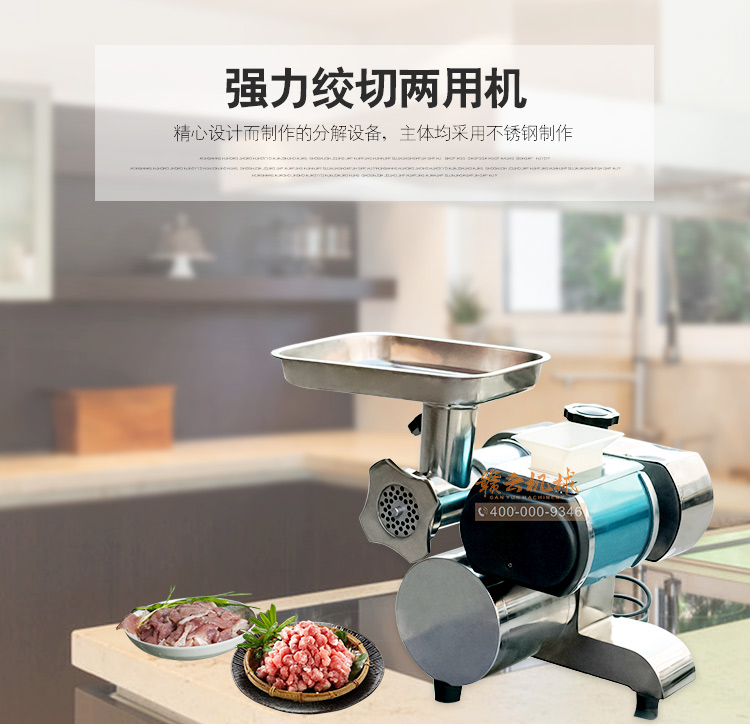這款機(jī)器可以絞肉和切肉,肉絲,肉粒、肉沫一機(jī)搞定。