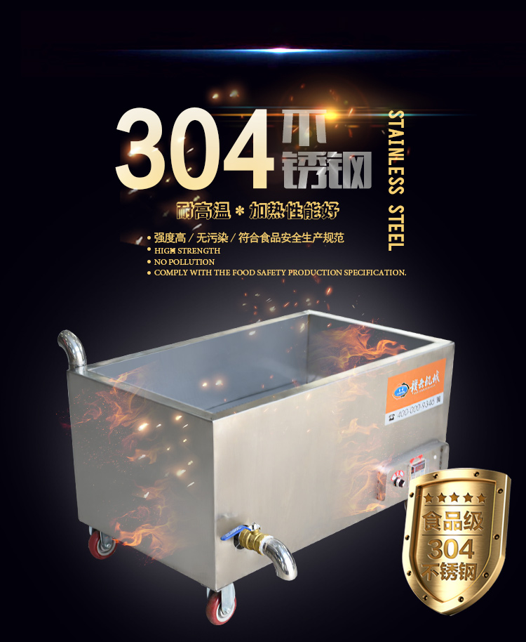 整機(jī)采用304不銹鋼材質(zhì)設(shè)計(jì),中間采用的發(fā)泡劑達(dá)到保溫隔熱作用。燃?xì)饧訜嵬昝赖慕鉀Q了眾多用戶沒(méi)有三相電的問(wèn)題。