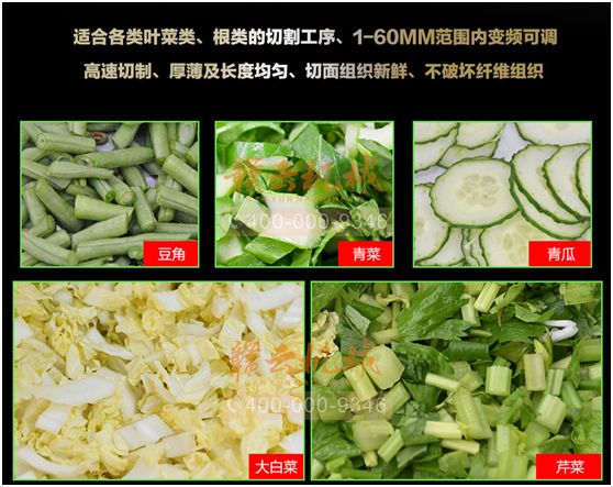 在凈菜加工中,切菜機的應(yīng)用必不可少。由于市場多樣化的需求,以及整體搭配的要求,凈菜需要呈現(xiàn)多種形態(tài),如片、絲、丁、條等,這就對切菜師傅的刀工以及速度有一定的要求。目前,市場上的花式多功能切菜機可切片、切絲、切條、切角塊、切丁、切斜片、切球、切厚、切薄等均可調(diào),同時使被切蔬菜加工面平整光滑、規(guī)則、組織完好、保持手工切制效果,并且保證凈菜符合國家對食品衛(wèi)生的需求。
