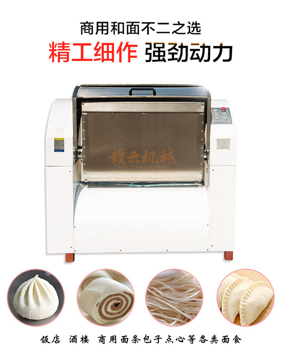 贛云100KG和面郎,超強(qiáng)模擬手工和面,使面的勁道快速形成,蛋白組織結(jié)構(gòu)均衡,最終面的筋性、咬勁、拉力都遠(yuǎn)遠(yuǎn)優(yōu)于其他形式和面機(jī)的和面效果,并且加工出來(lái)的面食,口感光滑、彈性好、咬勁十足.