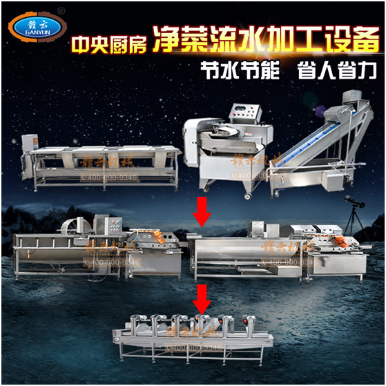 贛云掌握中央廚房凈菜設備核心技術,本套設備由分選輸送設備、數(shù)字多元化切配設備、提升機設備、渦流臭氧清洗去農(nóng)藥殘留設備、高頻振動機、渦流清洗機、風干機等組合而成。