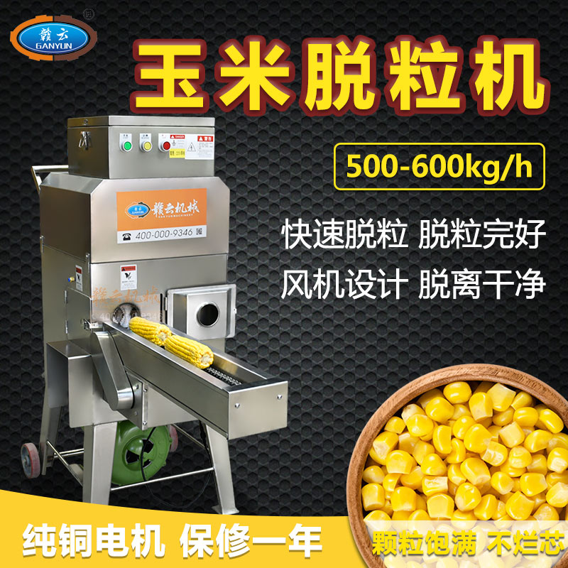 贛云自動(dòng)玉米脫粒機(jī)操作簡單,適合各種鮮、甜、糯玉米、凍玉米解凍后脫粒。整機(jī)采用全不銹鋼制造,配合腳輪移動(dòng)方便;變頻器控速、操作簡單;入料口處配有鏈條進(jìn)給裝置,有效地提高了工作效率(此裝置可根據(jù)需要裝卸);輥軸可根據(jù)玉米棒大小自動(dòng)調(diào)節(jié),適合各種大小玉米的脫粒,脫粒深淺可調(diào);出料口配有鼓風(fēng)機(jī)使脫后的玉米粒更加干凈。