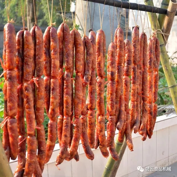 ②香腸左右,前后保持5-10cm的間隔,避免因擠壓造成通氣不暢,出現(xiàn)香腸發(fā)粘變質(zhì)現(xiàn)象;