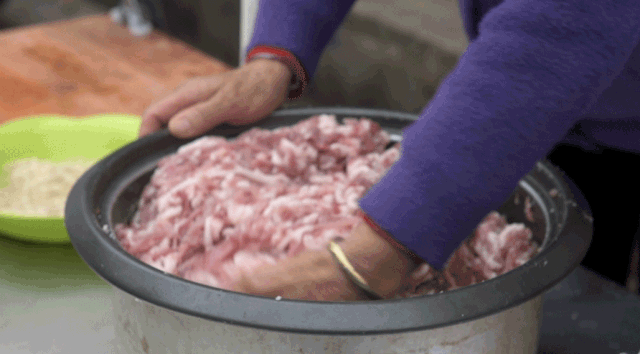 加入鹽、味精、糖,有了最基本的味道;再加沙姜粉、五香面,香味開始散出來;接下來使出秘方,從一個(gè)箱子里取一點(diǎn)含茴香、肉蔻等八種調(diào)料的配料,再加上一點(diǎn);然后生抽、老抽、蠔油、味極鮮、味達(dá)美按照最佳配比依次倒入;之后加花雕酒、老酒、白酒、紅葡萄酒,去腥;最后根據(jù)顧客口味加蔥汁、姜汁、大蒜汁。往一根香腸里加調(diào)味料如此繁瑣,并且加多加少都有講究,不能輕易變更。