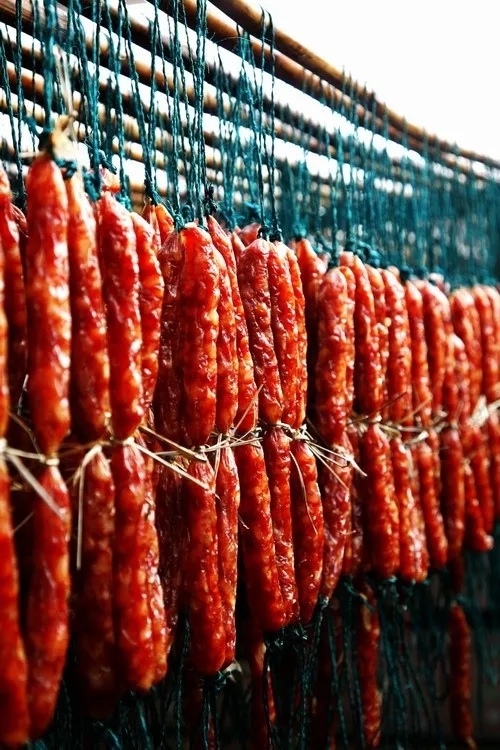 ⑥注意晾制時(shí)間,香腸晾制時(shí)間長(zhǎng)短與原料肉選取的肥瘦有關(guān)系,一般至少晾制15天以上,即可蒸煮一段進(jìn)行試吃,如果口感好即可收起,放置冰箱保鮮室進(jìn)行存放。
